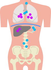 横隔膜より上と下の両方に、リンパ節やリンパ系組織の腫れがある